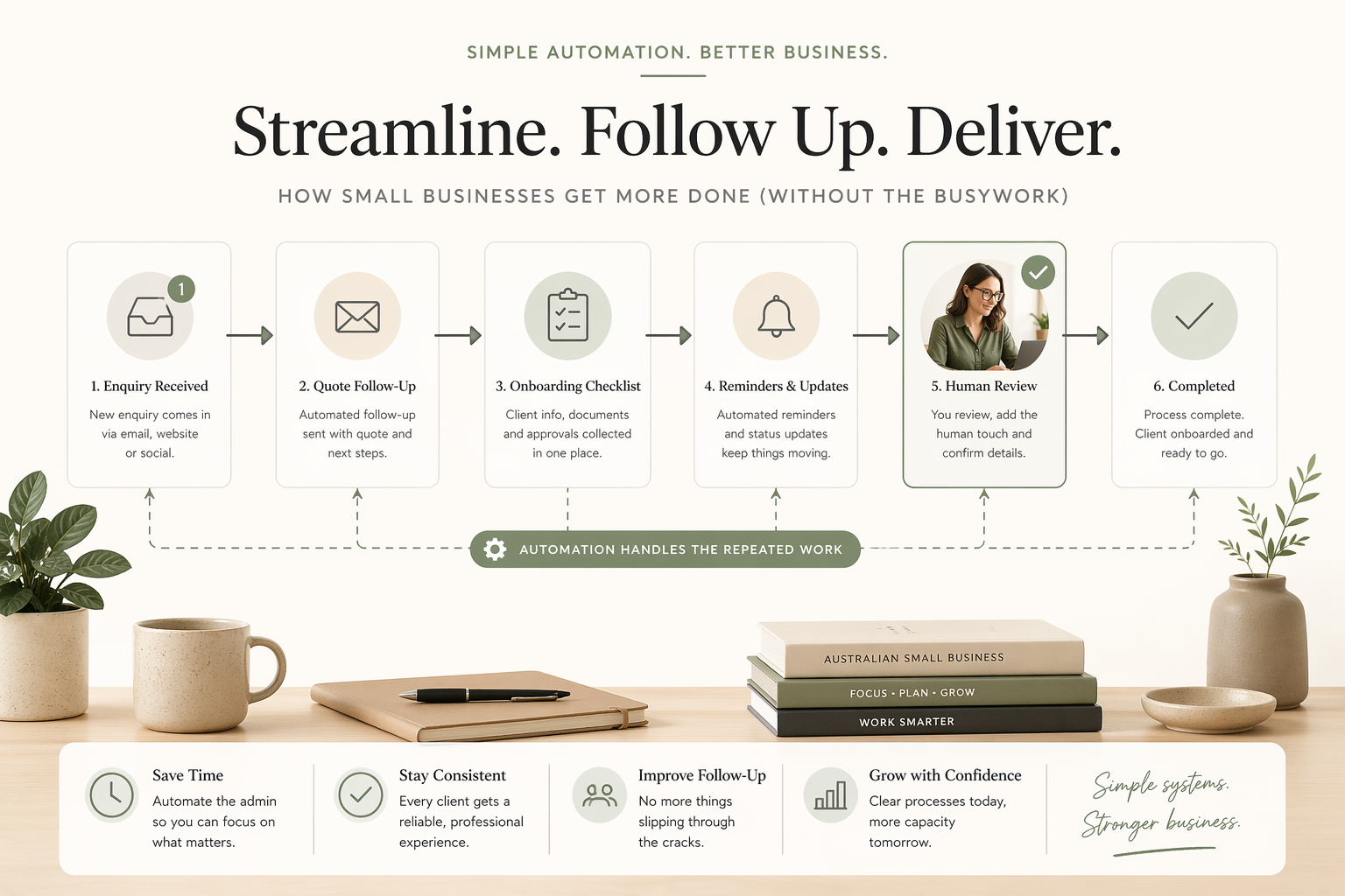 This is where small service businesses usually get the first return. Not from automating the most sophisticated process, but from improving the repeated admin work that quietly eats time every week.
